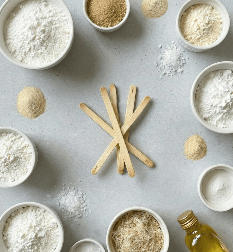 Harina de arroz, aceites vegetales (girasol oleico), azúcar moreno, almidón de maíz, almidón de tapioca, fécula de patata, fibra de bambú, espesante: goma xantana, sal marina, gasificantes: bicarbonato sódico, aroma.
